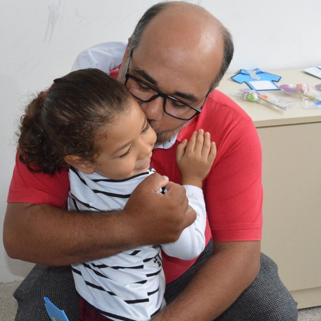 Ainda de acordo com o pai, a tarefa é desafiadora, mas muito satisfatória e faz questão de estar sempre presente. Por isso, acompanha sempre nas consultas e é participativo nas atividades em casa.