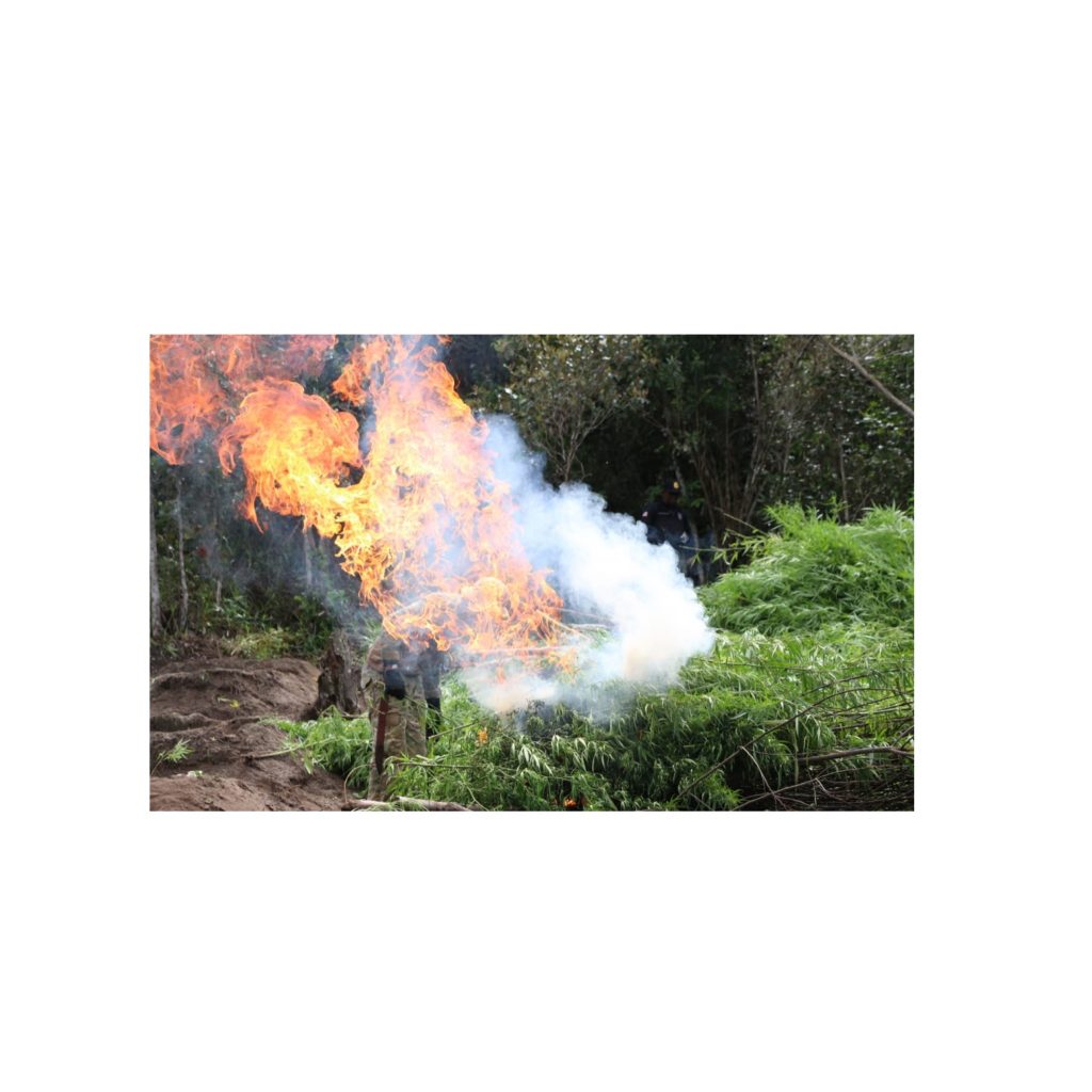 Os policiais cercaram os locais e andaram cerca de 6h (ida e volta), completando o percurso de aproximadamente 7 km, na mata fechada. Antes de chegarem na primeira plantação, um saco preto com parte da erva colhida foi encontrado. Os policiais acreditam que os traficantes correram e abandonaram a droga assim que ouviram o barulho das equipes caminhando.