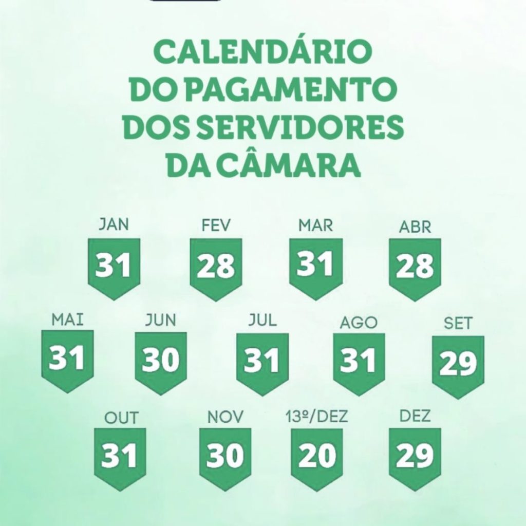 A Mesa Diretora da Câmara de Feira de Santana divulgou nesta sexta a tabela com as datas de pagamento do salário dos servidores da Casa para 2023. A remuneração será depositada sempre no último dia útil de cada mês – em fevereiro, dia 28 e em dezembro, 29. O 13º salário segue a legislação vigente: primeira parcela na data do aniversário do servidor e a segunda no dia 20 de dezembro.