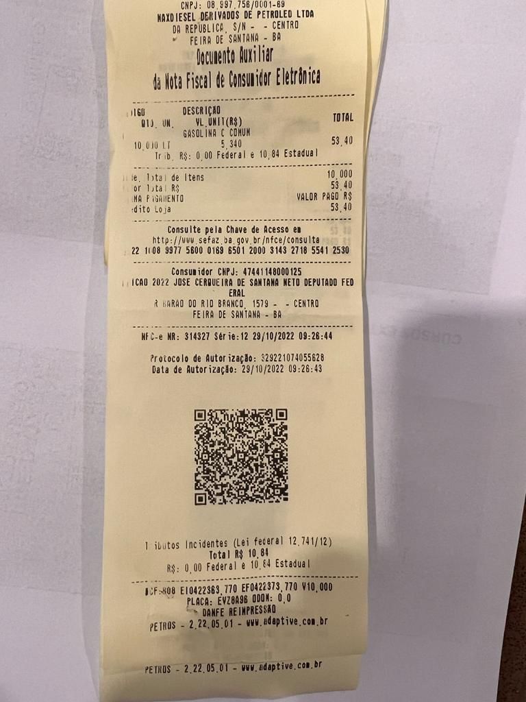 Ainda, segundo o deputado estadual eleito Pablo Roberto, que esteve no local, além do policial militar que estava no comando do abastecimento dos veículos, os abastecimentos estavam sendo feitos com dinheiro da campanha do deputado federal eleito Zé Neto, (vide nota fiscal) como se ainda fosse candidato, contrariando a legislação eleitoral.