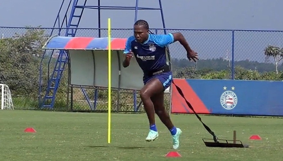 Rodallega em treino de força no Bahia — Foto: Divulgação/EC Bahia
