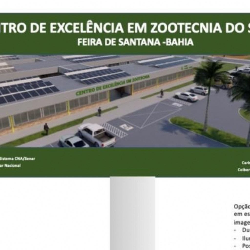 O SENAR (Serviço Nacional de Aprendizagem Rural) apresentou nesta sexta (1°) à Prefeitura de Feira de Santana o projeto do Centro de Excelência em Zootecnia – previsto para ser instalado no Parque de Exposições Dr. João Martins da Silva.
