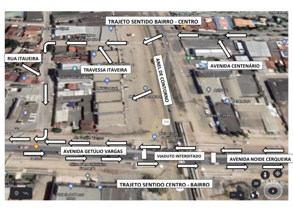A superintendência alertou ainda que que nesse mesmo sentido continuará o acesso pela Avenida Centenário – Rua Itaueira – Avenida Getúlio Vargas, conforme croqui (veja abaixo).