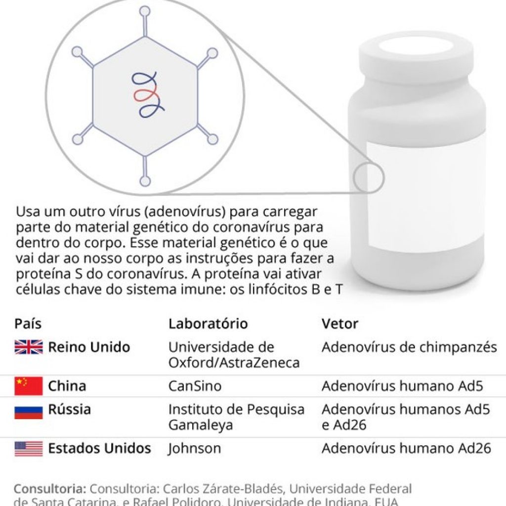 Mas essa possível vantagem ainda é teórica e precisa ser estudada melhor, avalia Carlos Zárate-Bladés, da UFSC.Infográfico mostra como funcionam vacinas de vetor viral contra o coronavírus — Foto: Anderson Cattai/G1