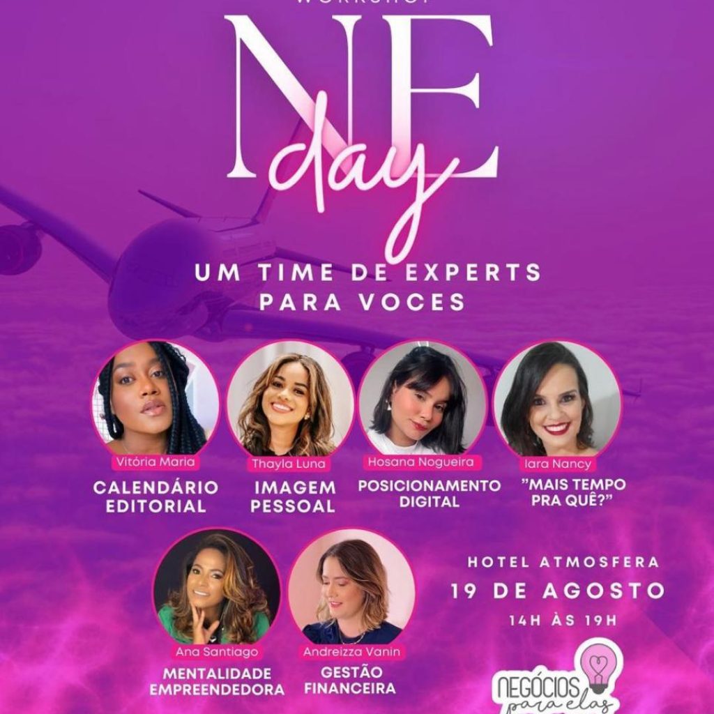 Estão abertas as inscrições para o Workshop NE Day – Transforme seus sonhos em ação, que será realizado no Hotel Atmosfera, na Rua São Domingos, no dia 19 de agosto das 14h às 19h. O evento é promovido pelo Negócios Para Elas e tem o objetivo de estimular o empreendedorismo feminino ajudando a transformar projetos em ação.